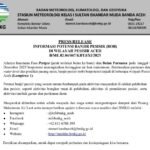 BANDA ACEH, NANGGROE.MEDIA | Badan Meteorologi, Klimatologi, dan Geofisika (BMKG) melalui Stasiun Meteorologi Sultan Iskandar Muda mengeluarkan peringatan dini terkait