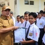 LHOKSEUMAWE, NANGGROE.MEDIA | Wali Kota Lhokseumawe Dr. Sayuti Abubakar, SH., MH menyerahkan seragam sekolah, tas dan perlengkapan sekolah lainnya kepada