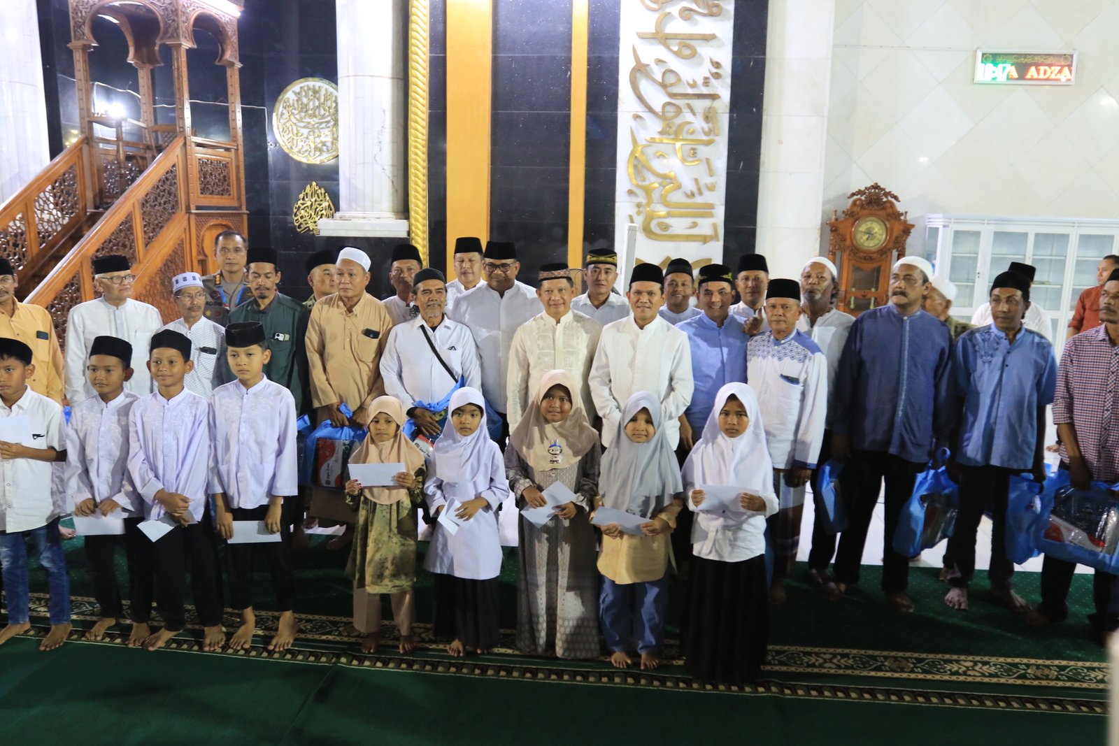 Dalam kesempatan tersebut, Mendagri Tito yang didampingi Wali Kota Lhokseumawe menyerahkan santunan kepada anak yatim serta bantuan perlengkapan ibadah dari Prabowo Subianto kepada masyarakat.