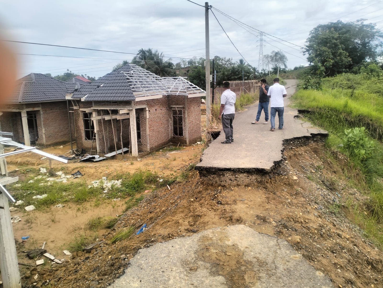 Selain kerusakan jalan, Dinas PUPR juga menaruh perhatian pada kondisi patahan bukit di sekitar lokasi yang dinilai berpotensi memicu longsor susulan.