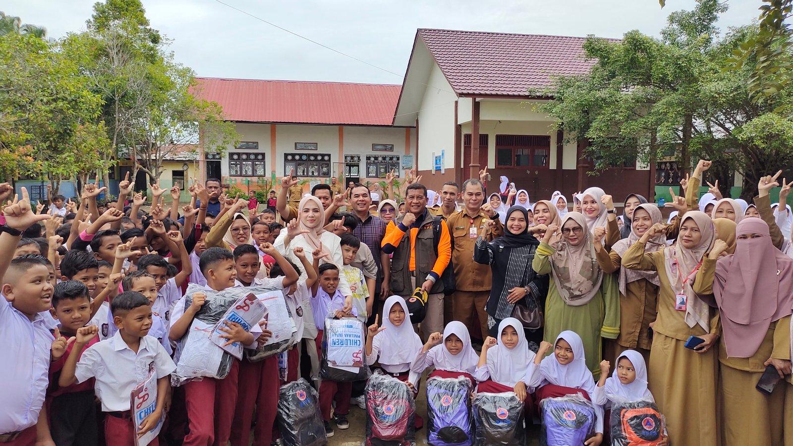 Adapun bantuan perlengkapan sekolah yang diberikan berupa paket perlengkapan sekolah darurat yang bersumber dari BNPB, di antaranya baju, celana, buku tulis, alat tulis, buku gambar, alat ukur, tas sekolah, botol minum, tempat makan, hingga perlengkapan penunjang belajar lainnya.