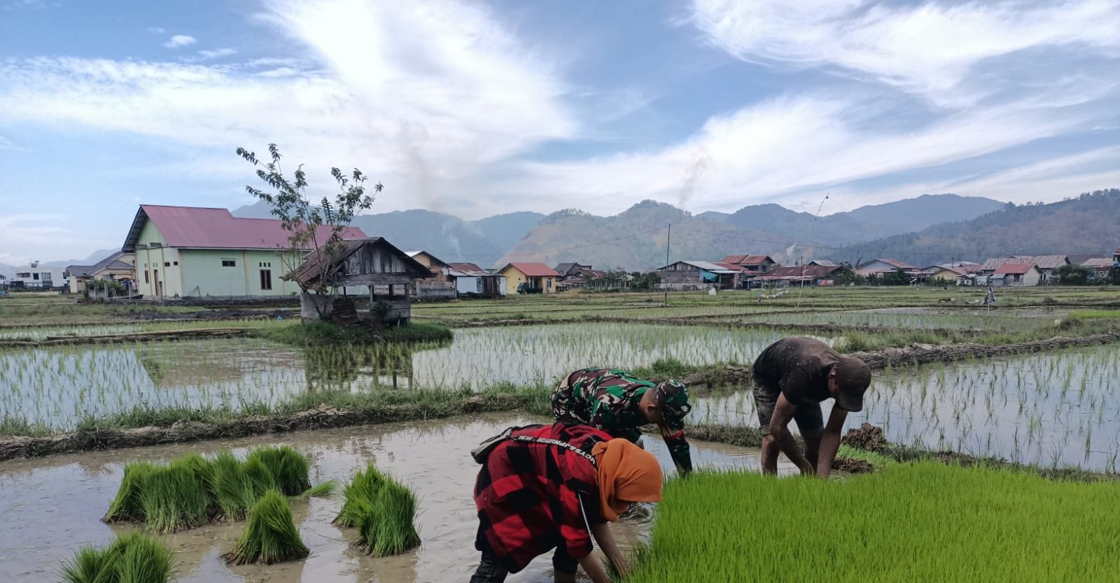NANGGROE.MEDIA, ACEH TENGAH | Babinsa Koramil 10 Celala, Kodim 0106 Aceh Tengah melaksanakan pendampingan kepada petani melakukan penanaman padi yang berlokasi di Kampung Desa Jongok Batin, Kecamatan Kebayakan, Kabupaten Aceh Tengah, Aceh pada Rabu, 12 November 2025.
