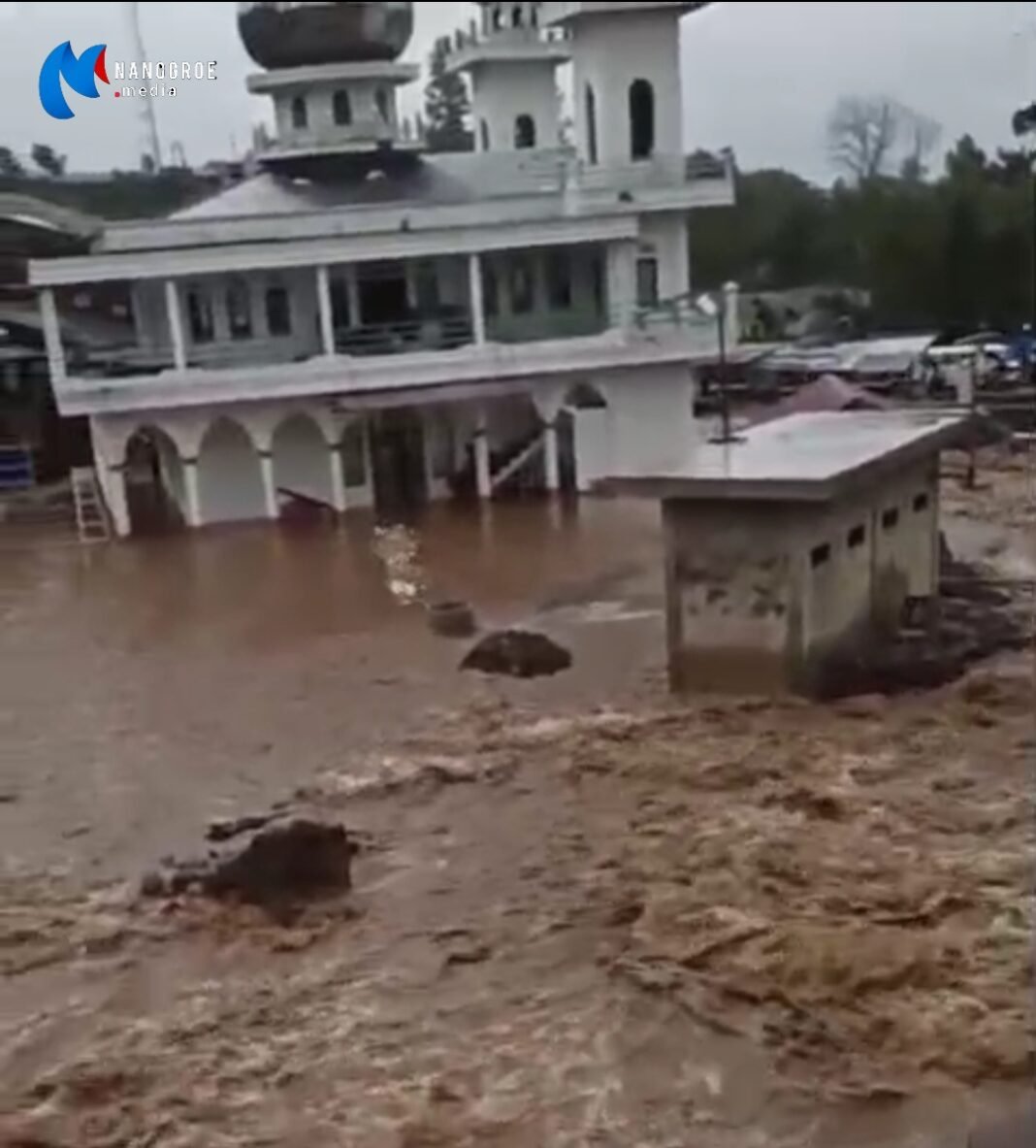 Salah seorang warga setempat kepada Nanggroe.media mengatakan, air sungai meluap pada sore hari akibatnya air yang meluap memasuki Meunasah.