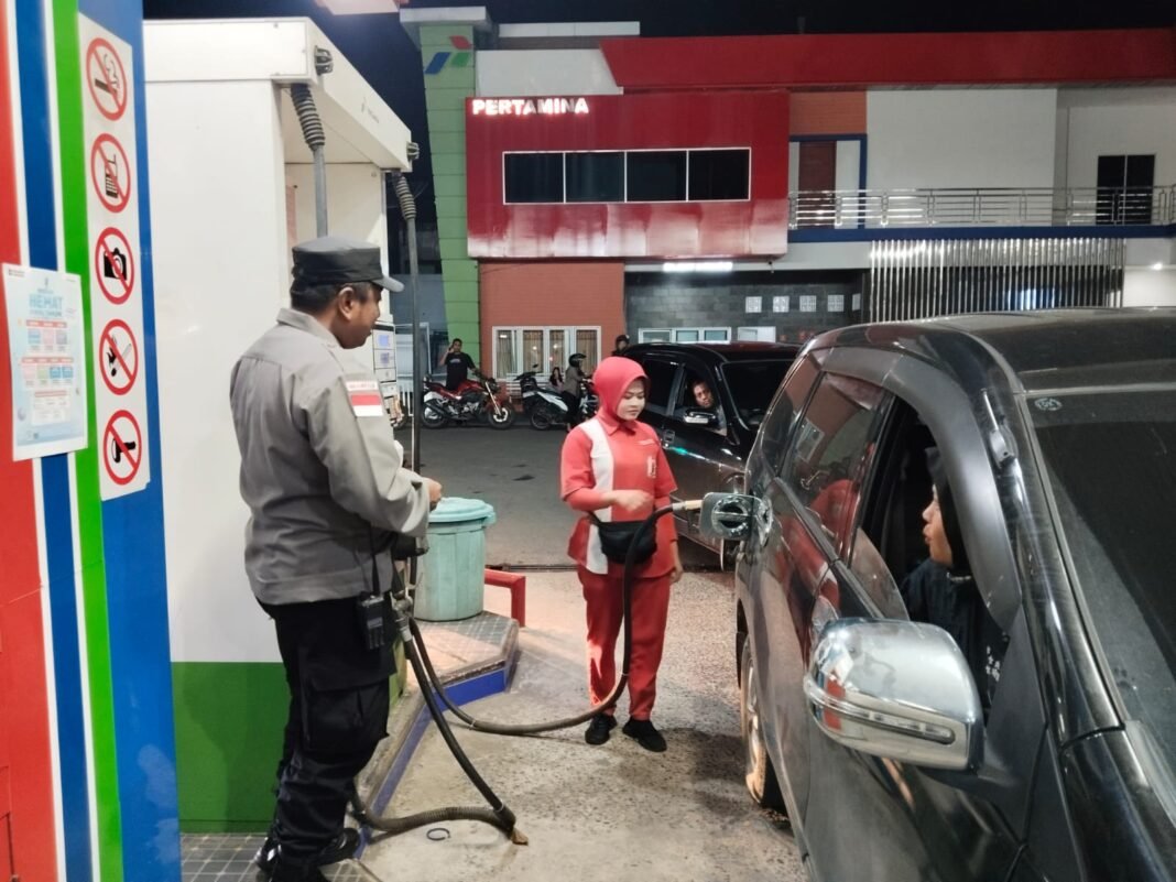 LHOKSEUMAWE, NANGGROE.MEDIA – Polres Lhokseumawe mengerahkan sejumlah personel untuk melakukan pengamanan serta pengaturan lalu lintas di sejumlah Stasiun Pengisian Bahan Bakar Umum (SPBU) yang berada di wilayah hukum Polres Lhokseumawe, Kamis (5/3/2026) malam.