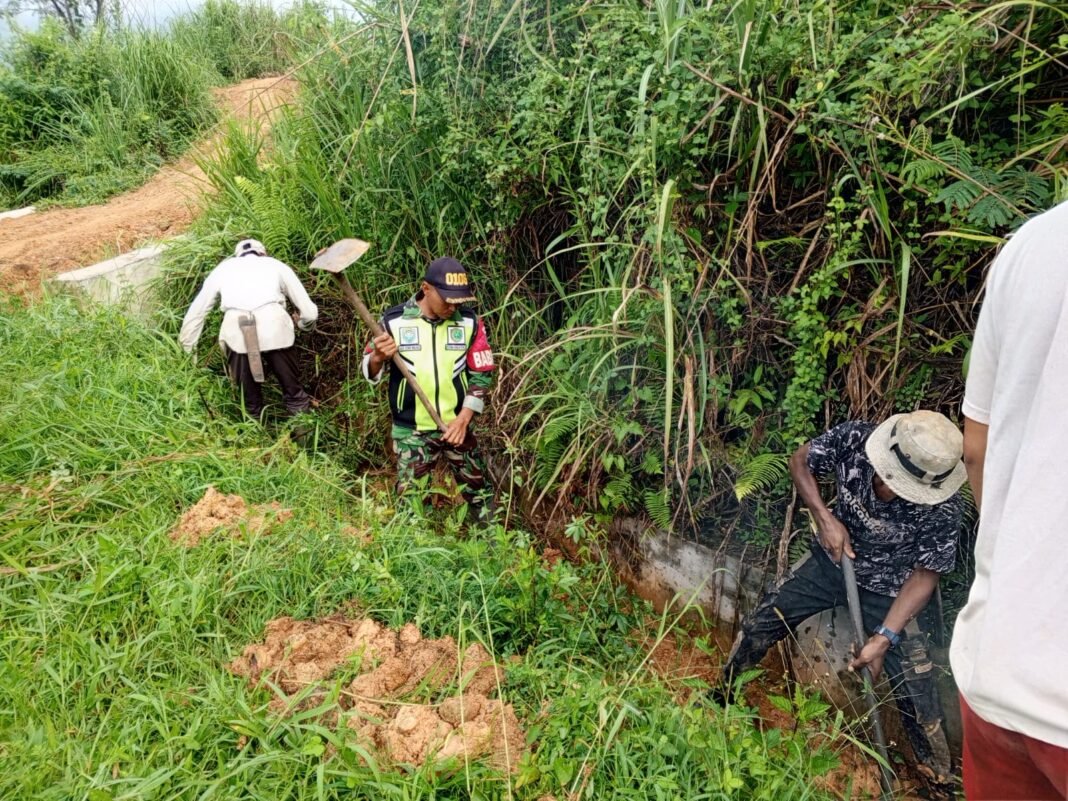 Koptu Agus Siswo, bersama warga melakukan pembersihan drainase agar lingkungan sekitar tetap bersih aman dan asri.