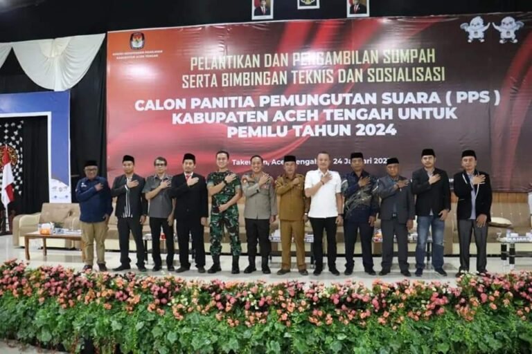 ACEH TENGAH | Pj. Bupati Aceh Tengah T. Mirzuan menghadiri acara pelantikan Panitia Pemungutan Suara (PPS) Kabupaten yang dilaksanakan oleh KIP Aceh Tengah, dalam hal ini di wakili oleh Staf Ahli Bidang Pembangunan, Ekonomi, dan Keuangan M. Thamrin Elashri Mohd. Ali, di Aula Universitas Gajah Putih, Takengon, pada Selasa, (24/01/2023).