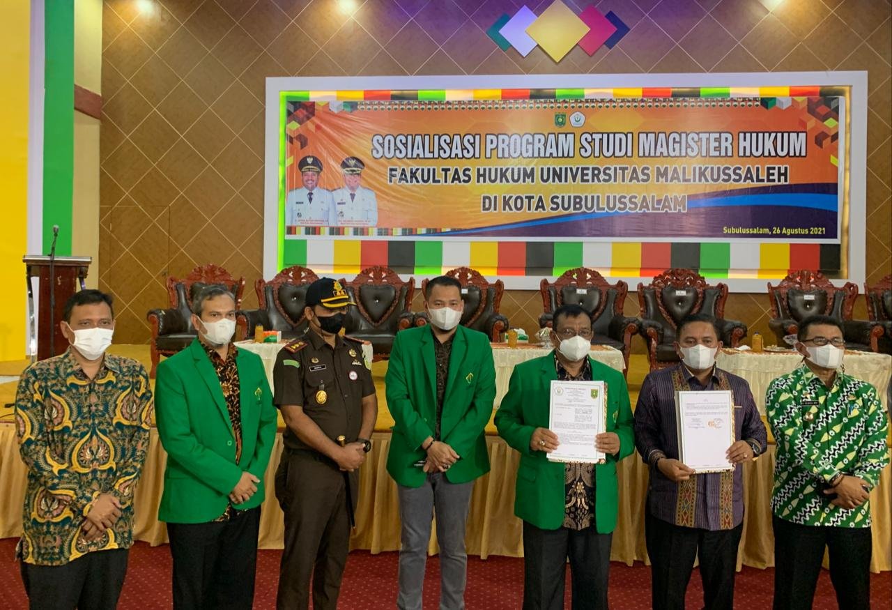 Nanggroe.net, Subulussalam | Fakultas Hukum Universitas Malikussleh (Unimal) Aceh, dalam mewujudkan Kampus “Merdeka Belajar Kampus Merdeka” (MBKM) kembali membuat gebrakan dengan melakukan Sosialisasi Magister Hukum Unimal dan penandatanganan Memorandum of Agreement (MoA) antara Fakultas Hukum Unimal bersama Forkopimda Kota Subulussalam di Gedung serba guna Pendopo Walikota Subulussalam, Kamis (26/8) .