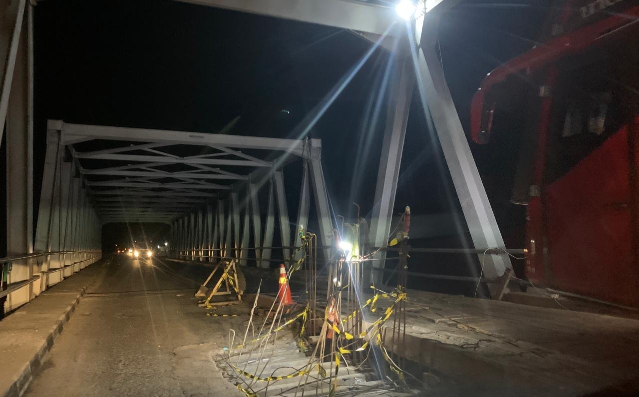 Oleh karena itu, sejak beberapa waktu lalu lantai jembatan itu diperbaiki dengan membongkar lantai jembatan dan memasang pelat besi dan rangkaian lainnya.