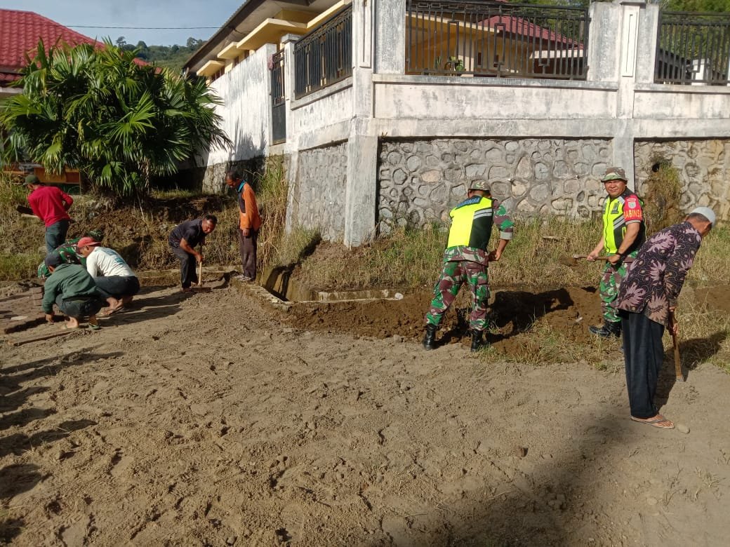 Pada saat di lokasi, terlihat tampak jelas kekompakan gotong-royong saling membantu antara Babinsa dengan warga setempat dalam pembersihan saluran air dan pemasangan paving block.
