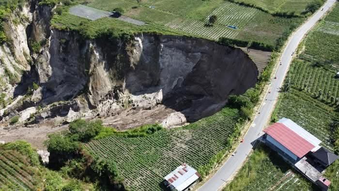 “Pada Minggu, 11 Januari 2026, kembali terjadi longsoran tanah sepanjang kurang lebih 13 meter dengan kedalaman sekitar 40 meter. Longsoran ini menyebabkan pelebaran lubang dan semakin mendekati badan jalan yang menghubungkan Kampung Blang Mancung, Aceh Tengah, dengan Kampung Simpang Balek, Bener Meriah,” jelas Kapolres.