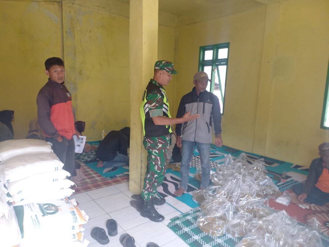 Masyarakat Desa Bukit Terima Bantuan Pangan, Babinsa Turut Dampingi