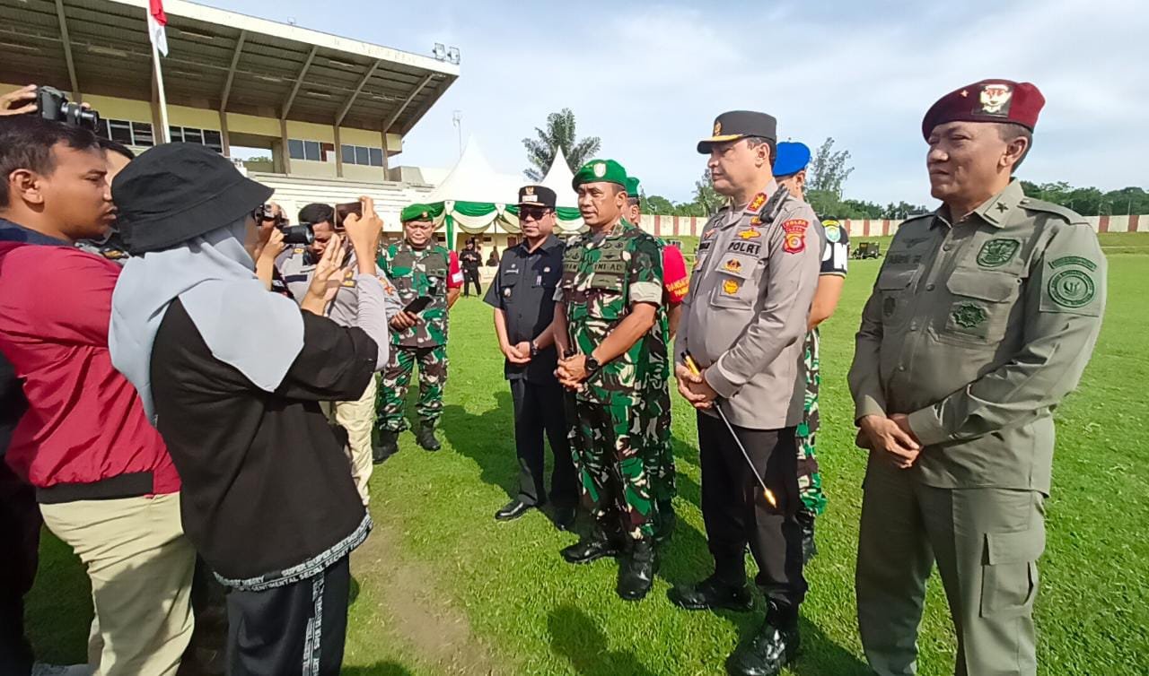 LHOKSEUMAWE | Panglima Komando Daerah Militer Iskandar Muda (Pangdam IM) Mayjen TNI Mohamad Hasan memimpin Apel Gelar Pasukan dalam rangka pengamanan Kunker Presiden Republik Indonesia Bpk. Ir. H. Joko Widodo di Wilayah Lhokseumawe Prov. Aceh. (09/02/23) pagi WIB.