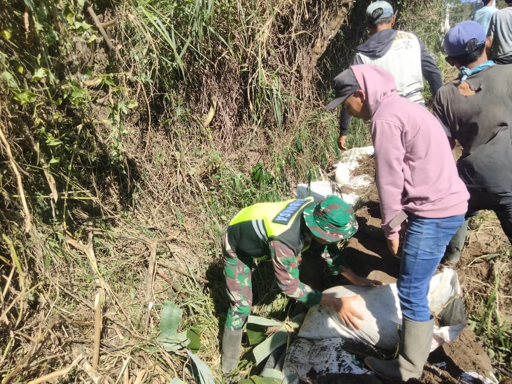 ”Kita bersama-sama memperbaiki jalan yang rusak akibat longsor, keikutsertaan masyarakat, pemerintah desa dan Babinsa menjadi kunci dalam penanganan jalan rusak atau jalan longsor akibat hujan ini.” ucapnya.