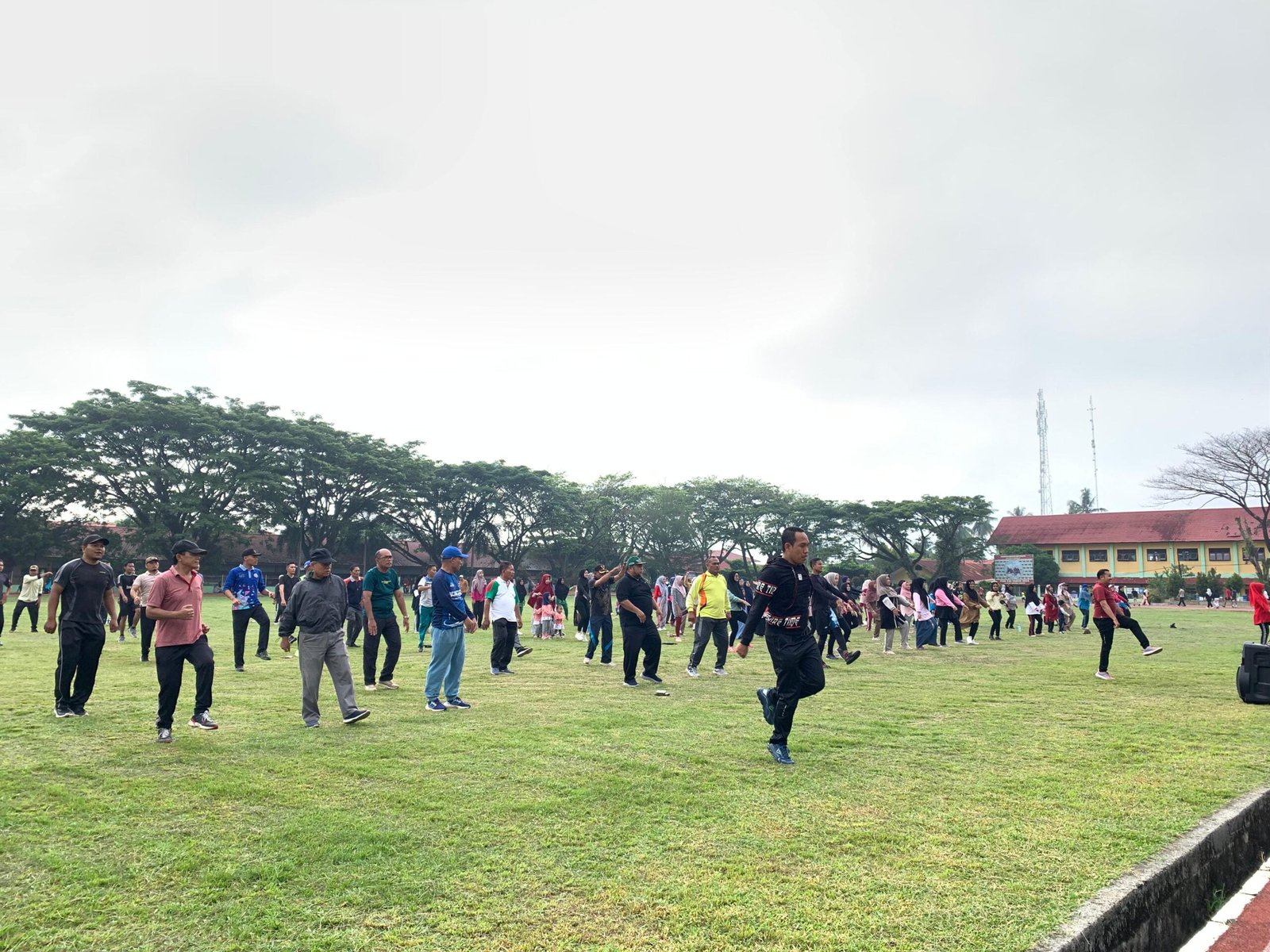 Senam pagi dihadiri Pj. Sekda Yusrizal, Staf Ahli Bupati Bidang Perekonomian dan Pembangunan Julkarnaen, Kadis DISPARPORA Bakri Saputra, Kadis Syariat Islam M. Iqbal Selian, Ka. BKPSDM Masudin, Kadis Sosial Bahagiawati, Kadis Dikbud Julkifli, Kadis Koperasi UMKM dan Transmigrasi Zulfan Harijadi, Kadis Perkimtan Mohd Asbi, Pelaku UMKM dan Masyarakat.