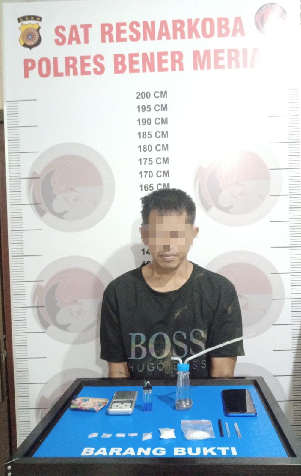 BENER MERIAH | Satuan Reserse Narkoba Polres Bener Meriah melakukan penangkapan terhadap satu orang pelaku tindak pidana narkotika jenis sabu.