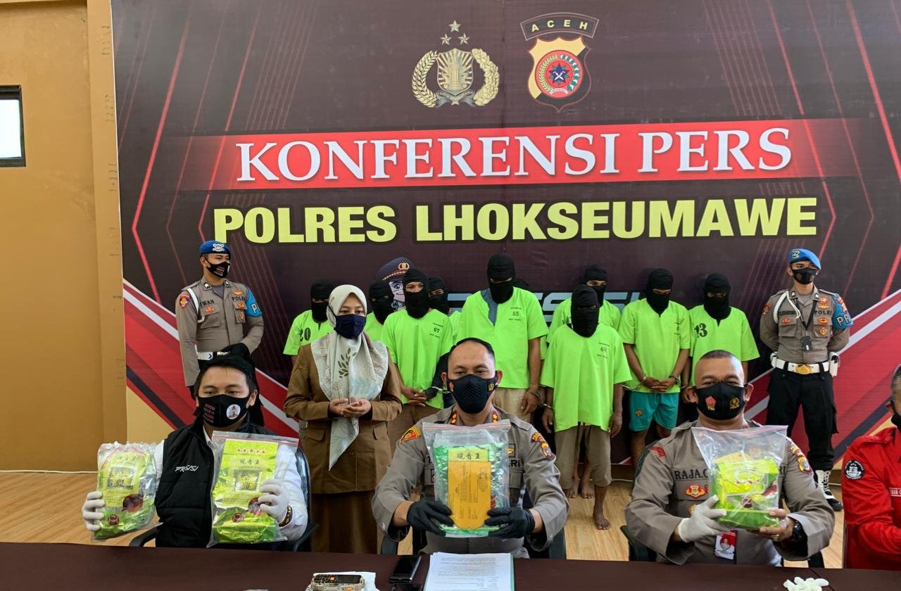 “Polres Lhokseumawe berhasil mengungkapkan dengan total barang bukti sebanyak 4,4 kilo gram sabu kurun waktu seminggu terakhir ini” ujar Kapolres.