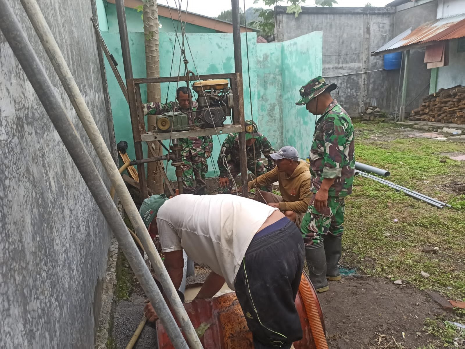 Dengan semangat pantang menyerah, anggota Satgas TMMD terus menuntaskan pekerjaan agar sumur bor segera bisa dimanfaatkan oleh masyarakat.