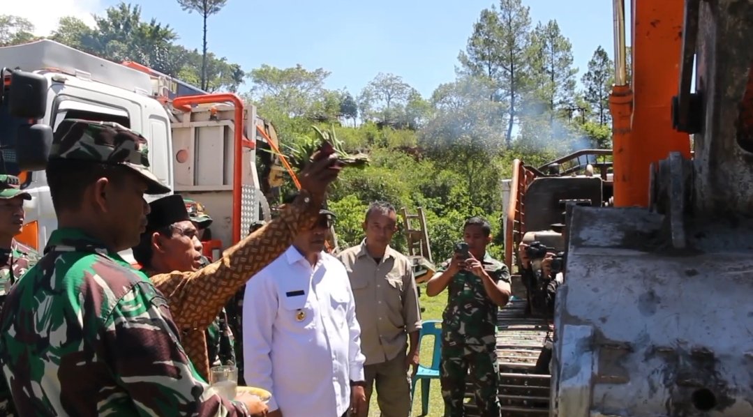 Foto (Nanggroe.media) : prosesi tradisi peusijuk alat berat dilakukan oleh tokoh pemuka agama dilapangan Kampung Kute Riyem, Kecamatan Linge, Aceh Tengah. Rabu (08/10).