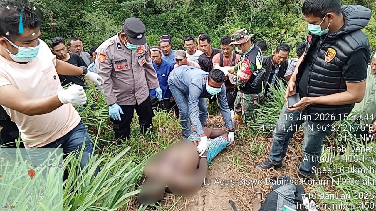 NANGGROE.MEDIA, ACEH TENGAH | Seorang pria berusia (25), ditemukan tak bernyawa di kebun sere. Sebelumnya pria tersebut dilaporkan pergi dari rumah pada 16 Januari 2026 sekitar pukul 14:00 WIB untuk mencari buah jernang di hutan.