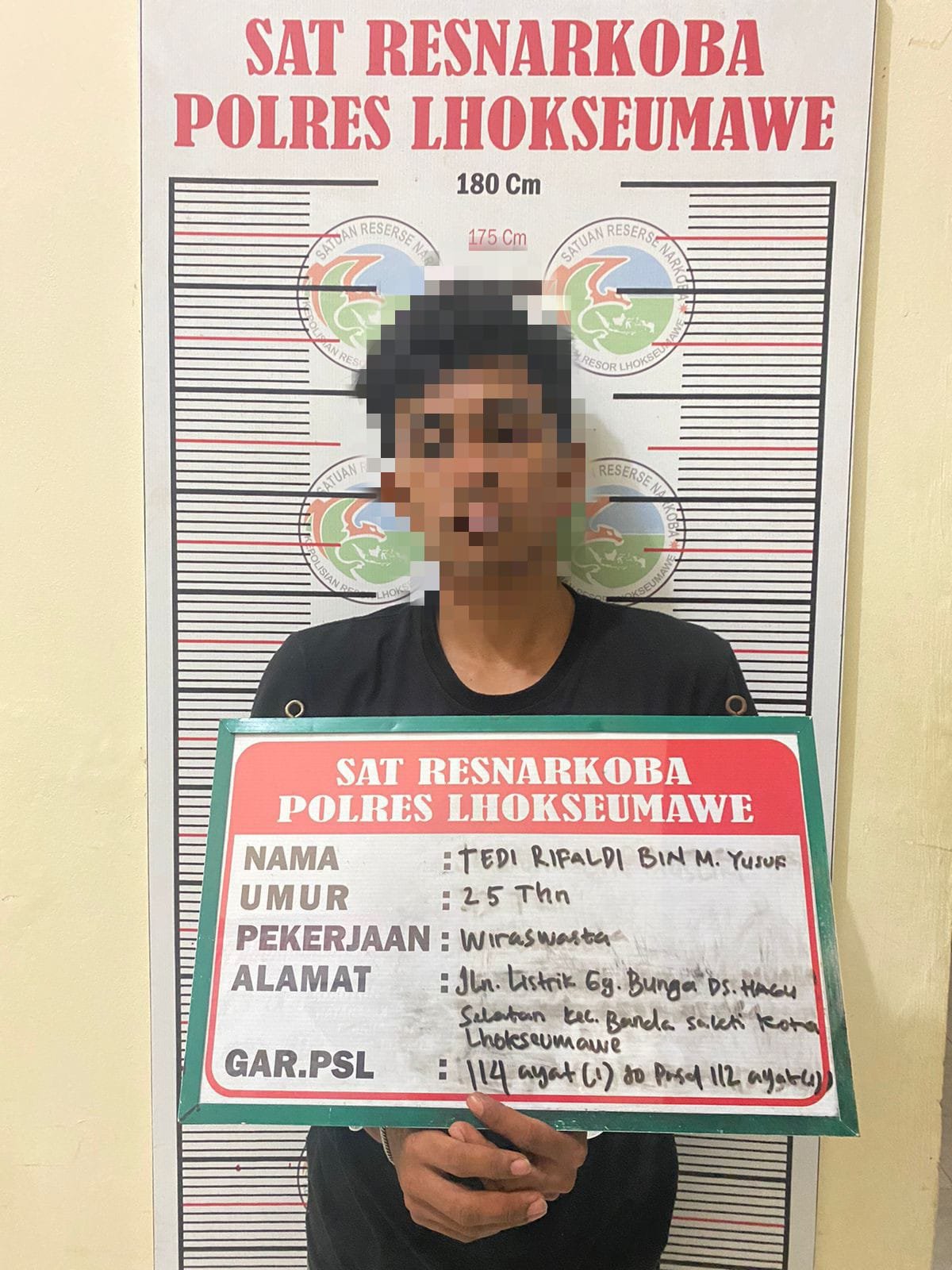 Kapolres Lhokseumawe, AKBP Henki Ismanto, SIK melalui Kasat Re Narkoba, Iptu Jeffryandi mengatakan, tersangka yang ditangkap yakni TR (25) warga Kota Lhokseumawe, IT (32) warga Kabupaten Bireuen dan MM (46) warga Kota Lhokseumawe.