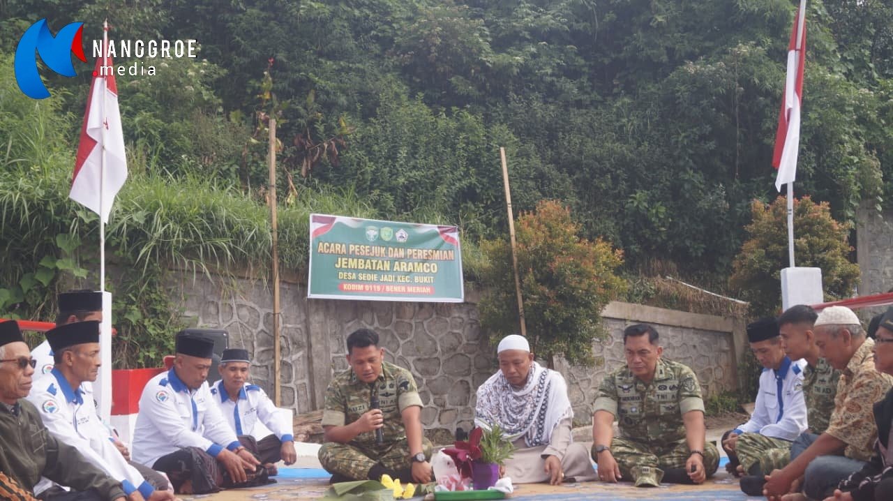Dalam kesempatan itu, Komandan Kodim 0119/Bener Meriah, Letkol Inf Ahmad Fauzi meresmikan jembatan Aramco yang telah selesai dibangun oleh personil Koramil 06/Bukit dan masyarakat setempat. Jumat, 17 April 2026.