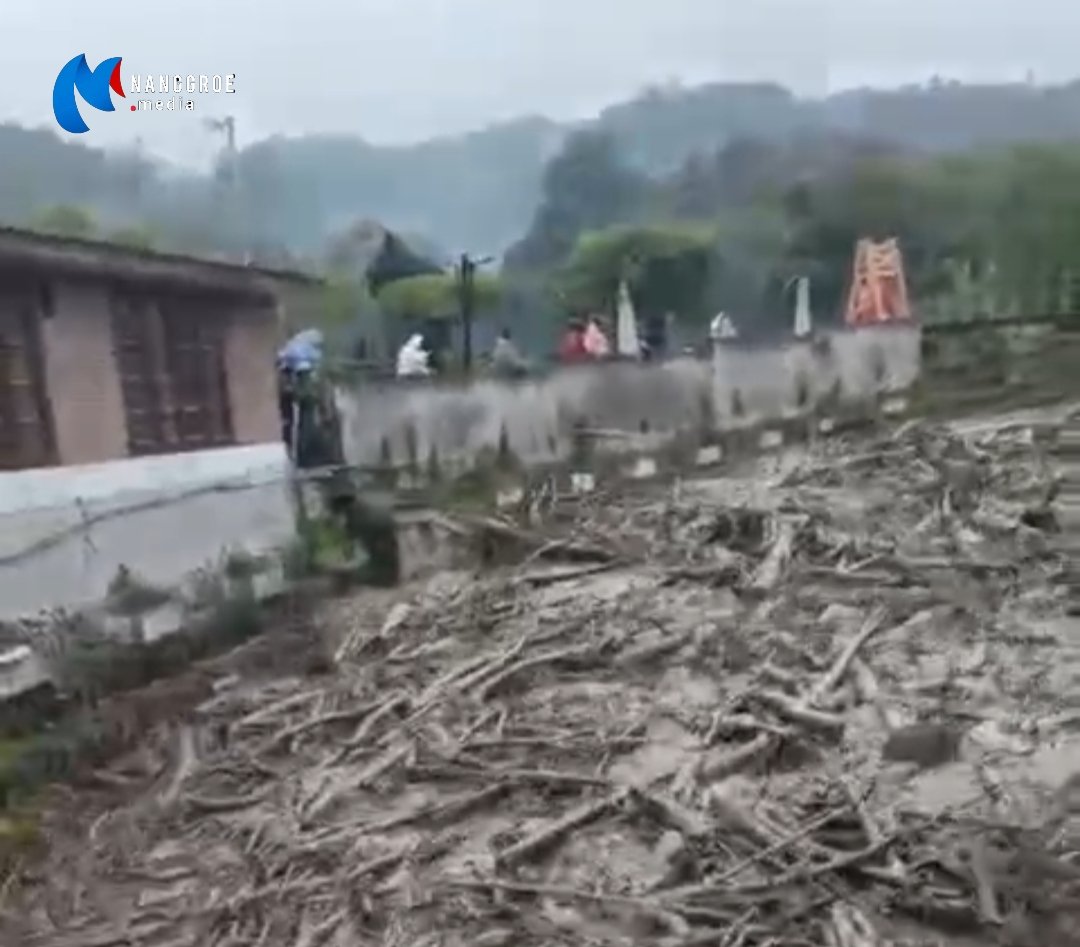 Tampak terlihat, air bercampur lumpur dan kayu gelondongan melintas di sungai tersebut. Warga di lokasi pun sempat panik, yang mana sebelumnya masyarakat di Kabupaten sempat telah mengalami banjir bandang dan tanah longsor beberapa bulan lalu.