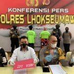 Nanggroe.net | Lhokseumawe – Kapolres Lhokseumawe AKBP Eko Hartanto, SIK, MH bersama Kasat Resnarkoba Iptu Wisnugraha Paramaartha dalam konferensi pers